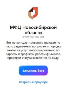 Чат-бот МФЦ Новосибирской области в МАХ 06.12.2025